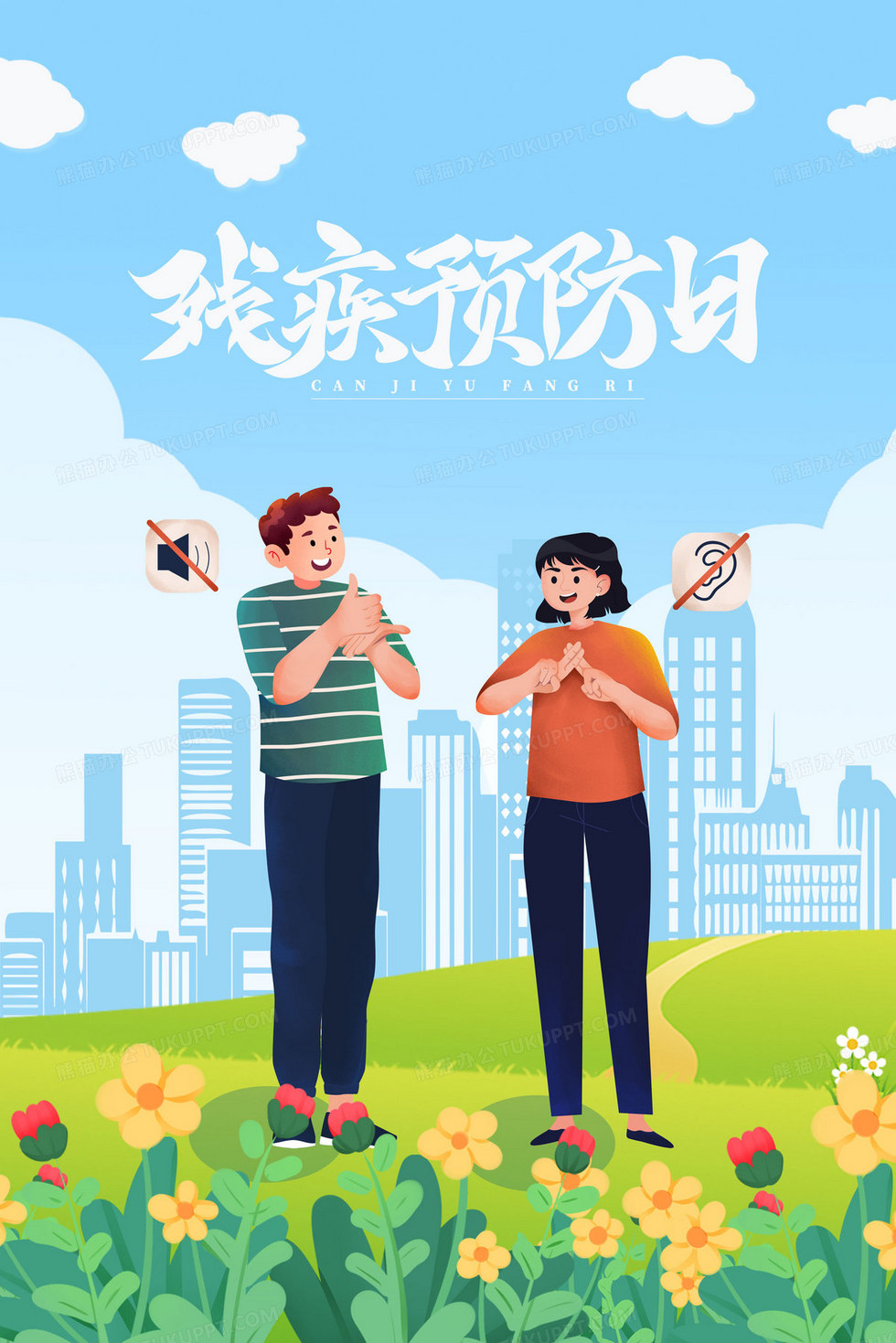 本作品内容为女孩和残疾人的手语对话手绘插画, 格式为 psd, 大小57 MB, 请使用软件PhotoShop(CS6)打开, 源文件无水印, 欢迎使用熊猫办公。 如认为平台内容涉嫌侵权,可通过邮件:tousu@tukuppt.com提出书面通知,我们将及时处理。