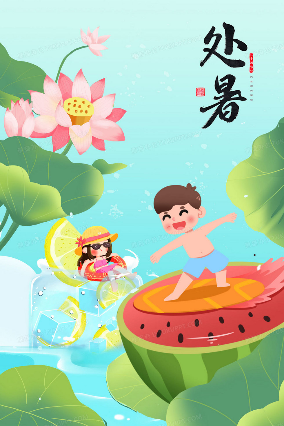 本作品内容为清凉玩乐处暑节气插画, 格式为 psd, 大小59 MB, 请使用软件PhotoShop(CC)打开, 源文件无水印, 欢迎使用熊猫办公。 如认为平台内容涉嫌侵权,可通过邮件:tousu@tukuppt.com提出书面通知,我们将及时处理。