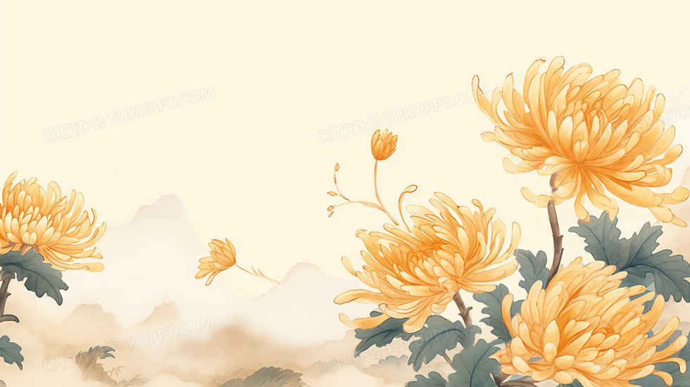 本作品内容为传统节日重阳节菊花插画, 格式为 jpg, 大小5 MB, 图片尺寸为2912 x 1632, 源文件无水印, 欢迎使用熊猫办公。 如认为平台内容涉嫌侵权,可通过邮件:tousu@tukuppt.com提出书面通知,我们将及时处理。