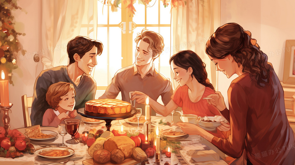 本作品内容为假期里聚餐的一家人插画, 格式为 jpg, 大小5 MB, 图片尺寸为2912 x 1632, 源文件无水印, 欢迎使用熊猫办公。 如认为平台内容涉嫌侵权,可通过邮件:tousu@tukuppt.com提出书面通知,我们将及时处理。