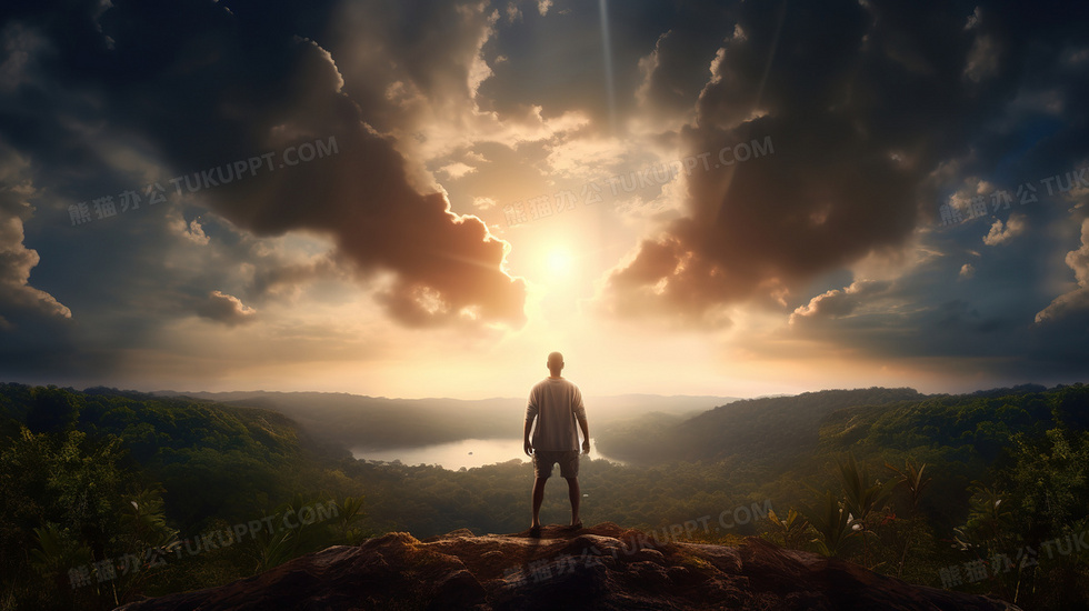 本作品内容为山顶眺望远处云海日出的男人创意插画, 格式为 jpg, 大小3 MB, 图片尺寸为2912 x 1632, 源文件无水印, 欢迎使用熊猫办公。 如认为平台内容涉嫌侵权,可通过邮件:tousu@tukuppt.com提出书面通知,我们将及时处理。