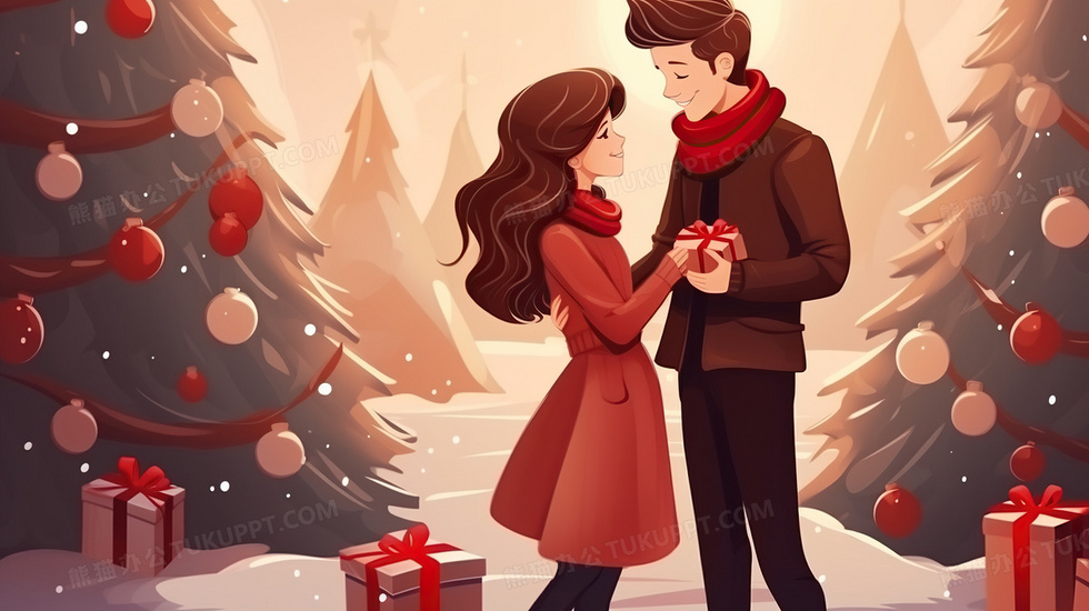 本作品内容为卡通圣诞节圣诞情侣约会插画, 格式为 jpg, 大小4 MB, 图片尺寸为2912 x 1632, 源文件无水印, 欢迎使用熊猫办公。 如认为平台内容涉嫌侵权,可通过邮件:tousu@tukuppt.com提出书面通知,我们将及时处理。