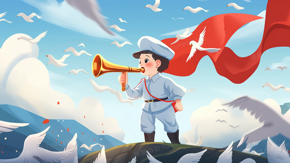 本作品内容为可爱卡通的小男孩站在海边吹起了号角创意插画, 格式为 jpg, 大小5 MB, 图片尺寸为2912 x 1632, 源文件无水印, 欢迎使用熊猫办公。 如认为平台内容涉嫌侵权,可通过邮件:tousu@tukuppt.com提出书面通知,我们将及时处理。