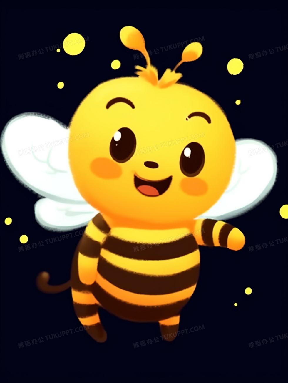 本作品内容为卡通可爱勤劳的小蜜蜂插画, 格式为 jpg, 大小4 MB, 图片尺寸为1856 x 2464, 源文件无水印, 欢迎使用熊猫办公。 如认为平台内容涉嫌侵权,可通过邮件:tousu@tukuppt.com提出书面通知,我们将及时处理。