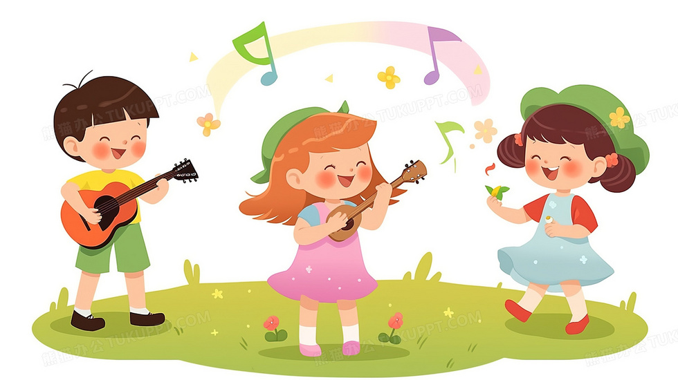 本作品内容为一群小朋友在草地上载歌载舞创意插画, 格式为 jpg, 大小1 MB, 图片尺寸为2912 x 1632, 源文件无水印, 欢迎使用熊猫办公。 如认为平台内容涉嫌侵权,可通过邮件:tousu@tukuppt.com提出书面通知,我们将及时处理。