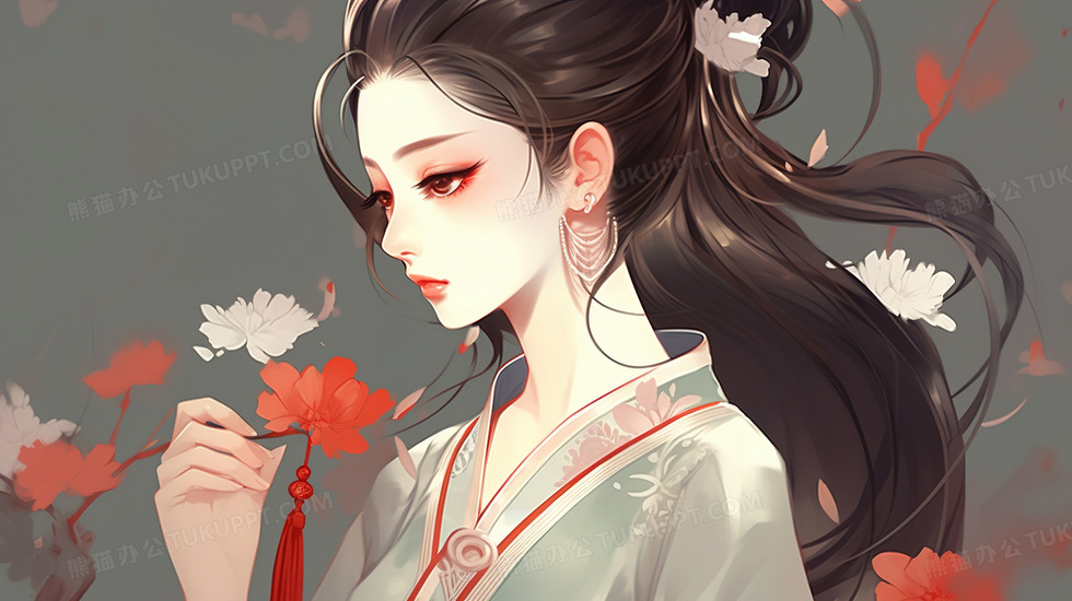 本作品内容为传统古典中国风美女插画, 格式为 jpg, 大小5 MB, 图片尺寸为2912 x 1632, 源文件无水印, 欢迎使用熊猫办公。 如认为平台内容涉嫌侵权,可通过邮件:tousu@tukuppt.com提出书面通知,我们将及时处理。