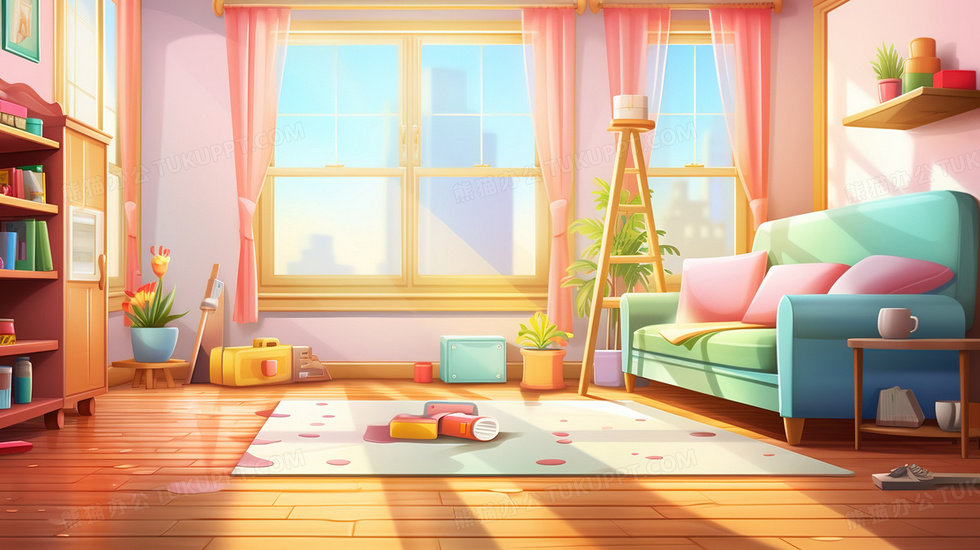 本作品内容为阳光洒进整洁温馨的房间里插画, 格式为 jpg, 大小4 MB, 图片尺寸为2912 x 1632, 源文件无水印, 欢迎使用熊猫办公。 如认为平台内容涉嫌侵权,可通过邮件:tousu@tukuppt.com提出书面通知,我们将及时处理。