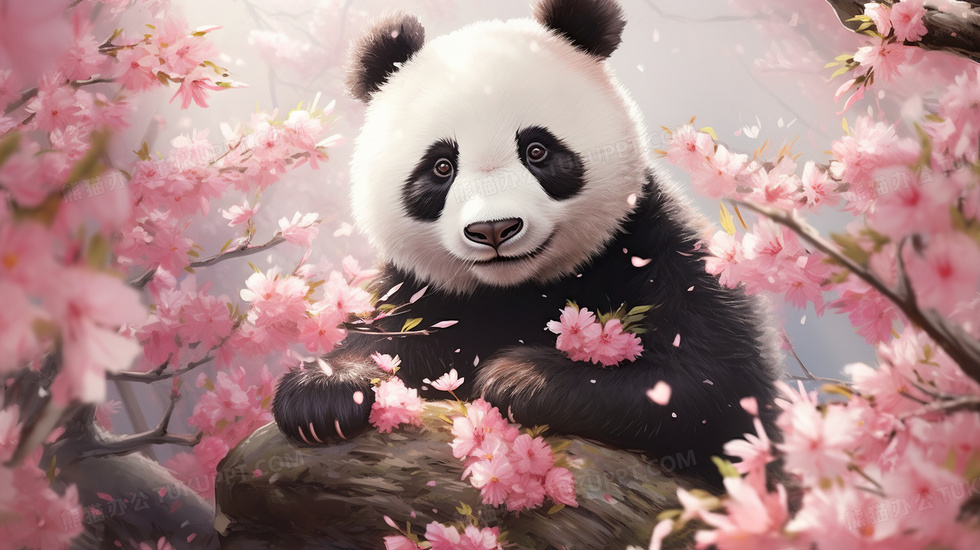 本作品内容为卡通大熊猫唯美花朵保护动物插画, 格式为 jpg, 大小6 MB, 图片尺寸为2912 x 1632, 源文件无水印, 欢迎使用熊猫办公。 如认为平台内容涉嫌侵权,可通过邮件:tousu@tukuppt.com提出书面通知,我们将及时处理。