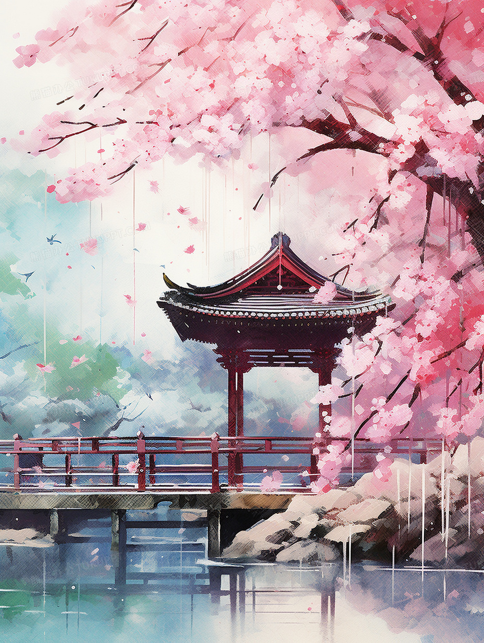 首页 > 插画 > 科技艺术 > 中国风 > 中国风山水樱花唯美风景插画