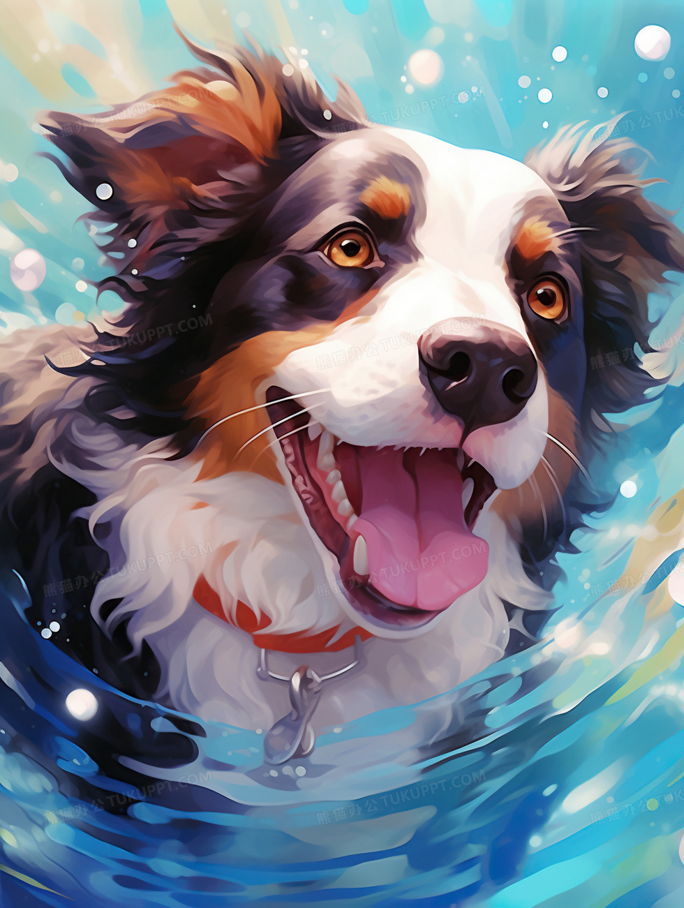 本作品内容为卡通可爱边牧小狗在水里玩耍插画, 格式为 jpg, 大小5 MB, 图片尺寸为1856 x 2464, 源文件无水印, 欢迎使用熊猫办公。 如认为平台内容涉嫌侵权,可通过邮件:tousu@tukuppt.com提出书面通知,我们将及时处理。