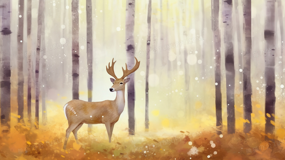 本作品内容为唯美金色森林深处的麋鹿插画, 格式为 jpg, 大小7 MB, 图片尺寸为2912 x 1632, 源文件无水印, 欢迎使用熊猫办公。 如认为平台内容涉嫌侵权,可通过邮件:tousu@tukuppt.com提出书面通知,我们将及时处理。