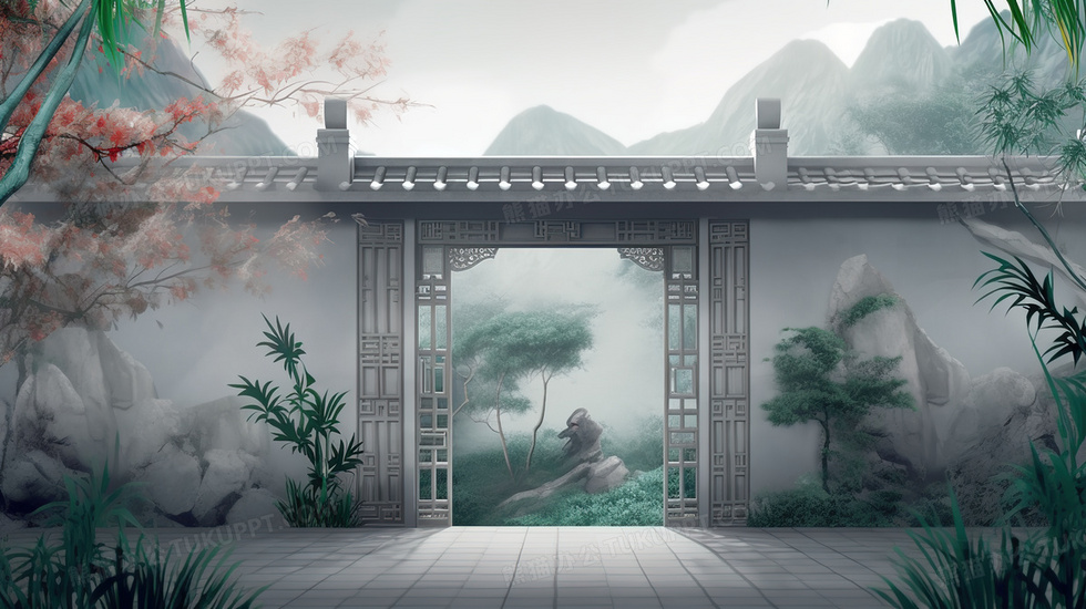本作品内容为中国风唯美庭院插画, 格式为 jpg, 大小6 MB, 图片尺寸为2912 x 1632, 源文件无水印, 欢迎使用熊猫办公。 如认为平台内容涉嫌侵权,可通过邮件:tousu@tukuppt.com提出书面通知,我们将及时处理。