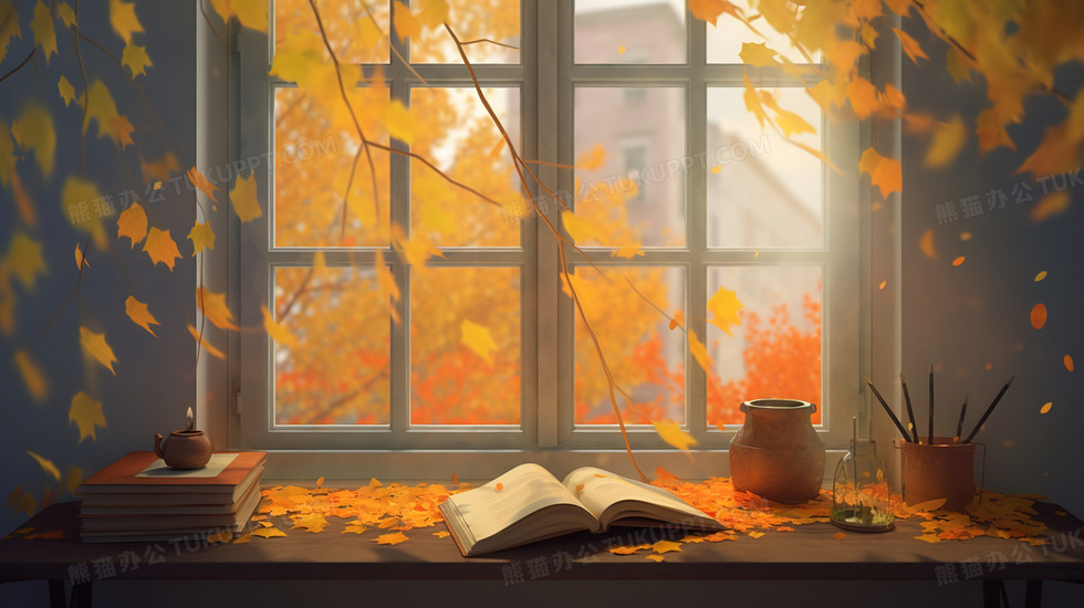本作品内容为秋天窗外金色树叶风景插画, 格式为 jpg, 大小4 MB, 图片尺寸为2912 x 1632, 源文件无水印, 欢迎使用熊猫办公。 如认为平台内容涉嫌侵权,可通过邮件:tousu@tukuppt.com提出书面通知,我们将及时处理。