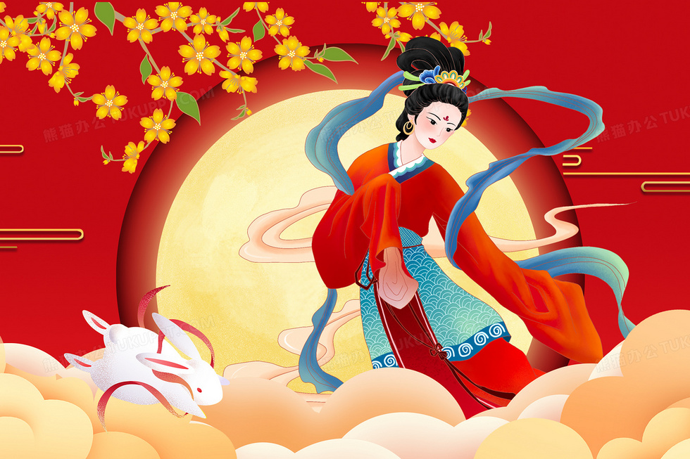 本作品内容为红色嫦娥玉兔中秋国庆双节同庆插画, 格式为 psd, 大小42 MB, 请使用软件PhotoShop(CS6)打开, 源文件无水印, 欢迎使用熊猫办公。 如认为平台内容涉嫌侵权,可通过邮件:tousu@tukuppt.com提出书面通知,我们将及时处理。
