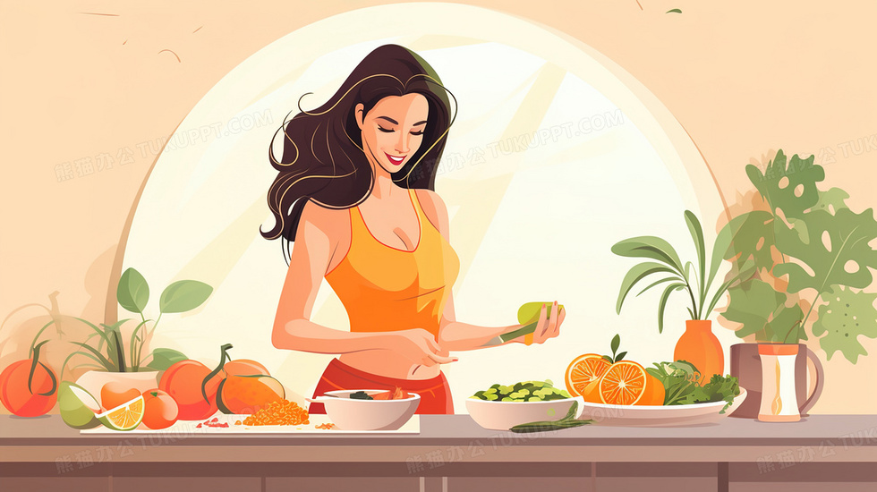 本作品内容为健身女孩健康绿色水果蔬菜饮食插画, 格式为 jpg, 大小4 MB, 图片尺寸为2912 x 1632, 源文件无水印, 欢迎使用熊猫办公。 如认为平台内容涉嫌侵权,可通过邮件:tousu@tukuppt.com提出书面通知,我们将及时处理。
