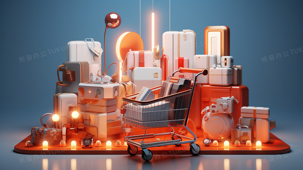 本作品内容为购物车和琳琅满目的商品电商购物插画, 格式为 jpg, 大小5 MB, 图片尺寸为2912 x 1632, 源文件无水印, 欢迎使用熊猫办公。 如认为平台内容涉嫌侵权,可通过邮件:tousu@tukuppt.com提出书面通知,我们将及时处理。