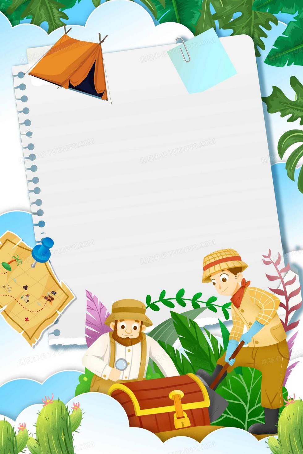 本作品内容为冒险家创意卡通合成背景, 格式为 psd, 大小16 MB, 图片尺寸为2362 x 3543, 作品中背景图片无需修改, 源文件无水印,可以直接使用, 欢迎使用熊猫办公。 如认为平台内容涉嫌侵权,可通过邮件:tousu@tukuppt.com提出书面通知,我们将及时处理。