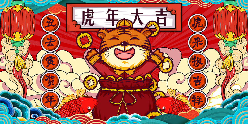 本作品内容为创意国潮风虎年大吉2022系列插画背景, 格式为 psd, 大小90 MB, 图片尺寸为4724 x 2362, 作品中背景图片无需修改, 源文件无水印,可以直接使用, 欢迎使用熊猫办公。 如认为平台内容涉嫌侵权,可通过邮件:tousu@tukuppt.com提出书面通知,我们将及时处理。