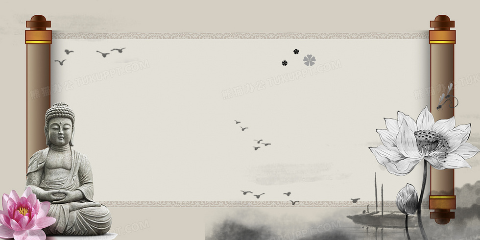 本作品内容为水墨简约质感拜佛宣传背景, 格式为 psd, 大小23 MB, 图片尺寸为4724 x 2362, 作品中背景图片无需修改, 源文件无水印,可以直接使用, 欢迎使用熊猫办公。 如认为平台内容涉嫌侵权,可通过邮件:tousu@tukuppt.com提出书面通知,我们将及时处理。