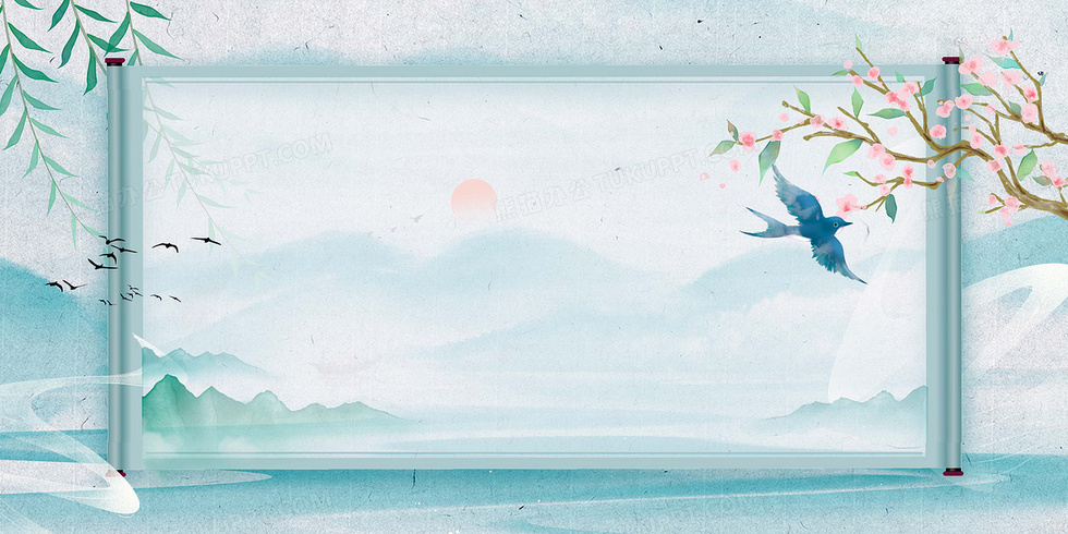 本作品内容为水墨天青色山水卷轴春日山水背景, 格式为 psd, 大小69 MB, 图片尺寸为4724 x 2362, 作品中背景图片无需修改, 源文件无水印,可以直接使用, 欢迎使用熊猫办公。 如认为平台内容涉嫌侵权,可通过邮件:tousu@tukuppt.com提出书面通知,我们将及时处理。