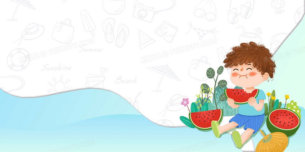 本作品内容为清新的夏日剪纸吃西瓜手绘背景, 格式为 psd, 大小24 MB, 图片尺寸为4724 x 2362, 作品中背景图片无需修改, 源文件无水印,可以直接使用, 欢迎使用熊猫办公。 如认为平台内容涉嫌侵权,可通过邮件:tousu@tukuppt.com提出书面通知,我们将及时处理。