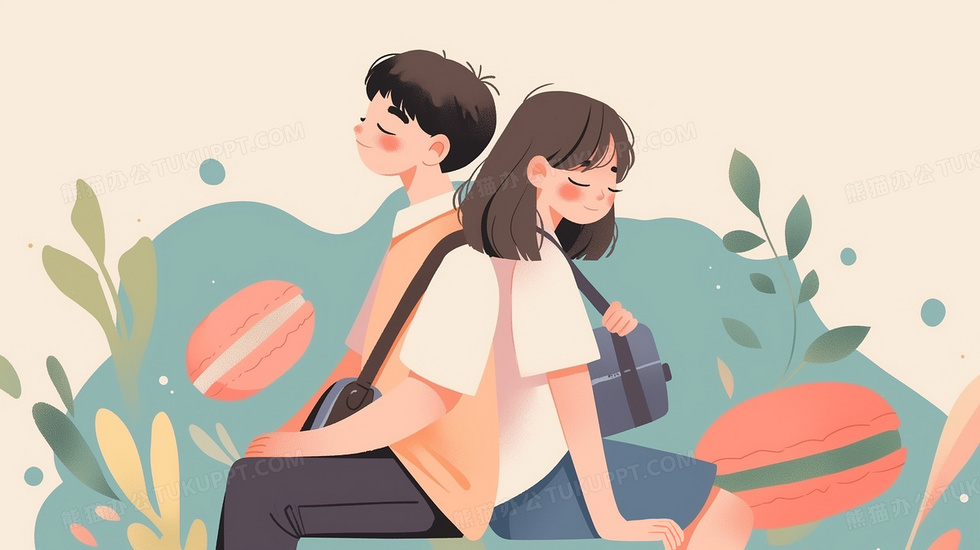 本作品内容为七夕情人节极简风格马卡龙色系情侣背靠背爱情插画, 格式为 jpg, 大小3 MB, 图片尺寸为2912 x 1632, 源文件无水印, 欢迎使用熊猫办公。 如认为平台内容涉嫌侵权,可通过邮件:tousu@tukuppt.com提出书面通知,我们将及时处理。