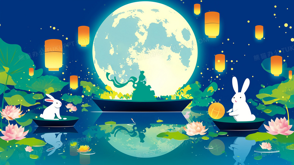 本作品内容为两只月兔在船上赏月吃月饼矢量插画, 格式为 jpg, 大小4 MB, 图片尺寸为2912 x 1632, 源文件无水印, 欢迎使用熊猫办公。 如认为平台内容涉嫌侵权,可通过邮件:tousu@tukuppt.com提出书面通知,我们将及时处理。