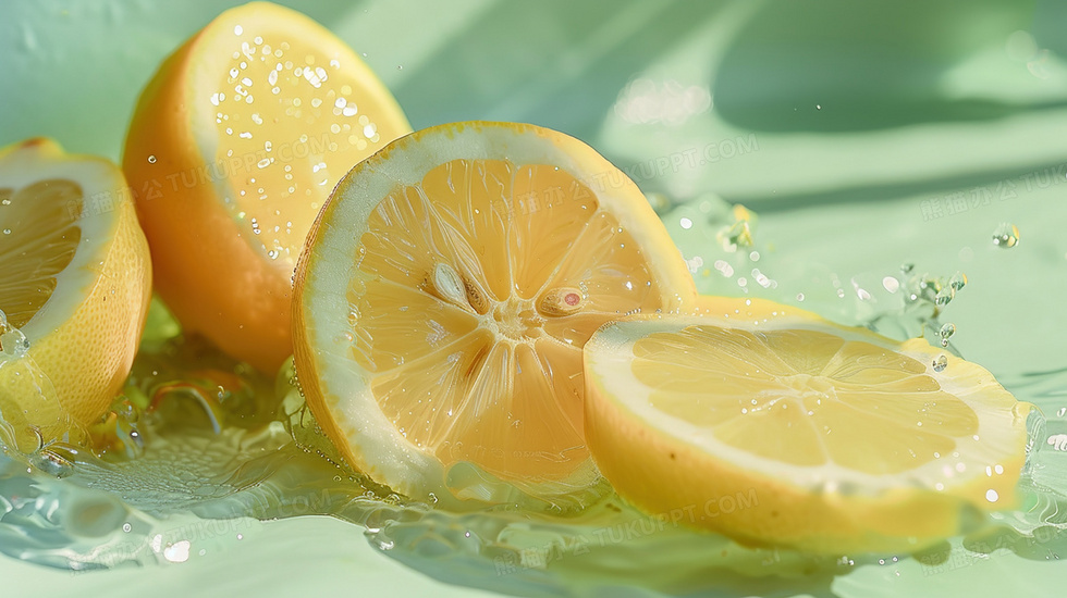 清新水中柠檬背景