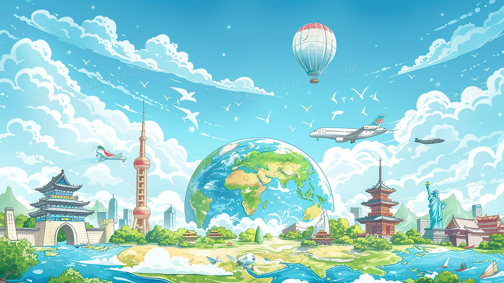 本作品内容为简约风环球旅行创意插画, 格式为 jpg, 大小3 MB, 图片尺寸为2912 x 1632, 源文件无水印, 欢迎使用熊猫办公。 如认为平台内容涉嫌侵权,可通过邮件:tousu@tukuppt.com提出书面通知,我们将及时处理。