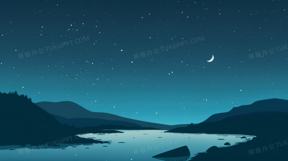 本作品内容为卡通夜晚月亮与湖面背景, 格式为 jpg, 大小5 MB, 图片尺寸为2912 x 1632, 作品中背景图片无需修改, 源文件无水印,可以直接使用, 欢迎使用熊猫办公。 如认为平台内容涉嫌侵权,可通过邮件:tousu@tukuppt.com提出书面通知,我们将及时处理。