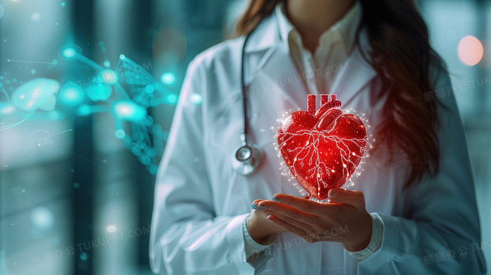 本作品内容为女医生穿白大褂戴着听诊器手捧心脏插画, 格式为 jpg, 大小3 MB, 图片尺寸为2912 x 1632, 源文件无水印, 欢迎使用熊猫办公。 如认为平台内容涉嫌侵权,可通过邮件:tousu@tukuppt.com提出书面通知,我们将及时处理。