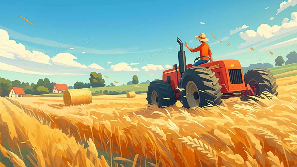 本作品内容为秋天庄稼拖拉机秋收插画, 格式为 jpg, 大小3 MB, 图片尺寸为2912 x 1632, 源文件无水印, 欢迎使用熊猫办公。 如认为平台内容涉嫌侵权,可通过邮件:tousu@tukuppt.com提出书面通知,我们将及时处理。