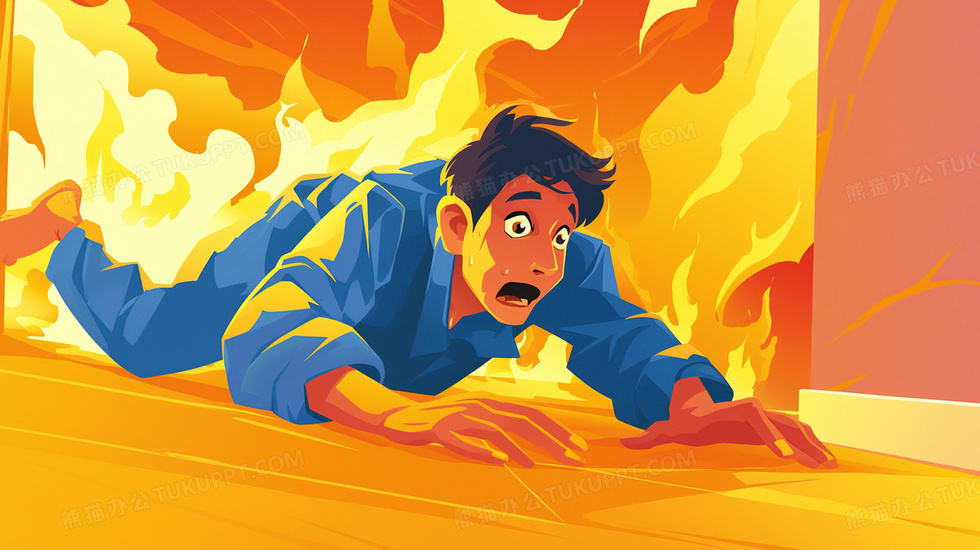 本作品内容为火灾匍匐逃生的男孩插画, 格式为 jpg, 大小2 MB, 图片尺寸为2912 x 1632, 源文件无水印, 欢迎使用熊猫办公。 如认为平台内容涉嫌侵权,可通过邮件:tousu@tukuppt.com提出书面通知,我们将及时处理。