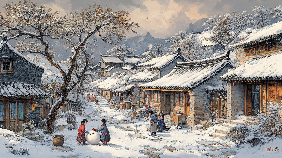 本作品内容为古代冬天房屋村庄街道人物风景插画, 格式为 jpg, 大小5 MB, 图片尺寸为2912 x 1632, 源文件无水印, 欢迎使用熊猫办公。 如认为平台内容涉嫌侵权,可通过邮件:tousu@tukuppt.com提出书面通知,我们将及时处理。