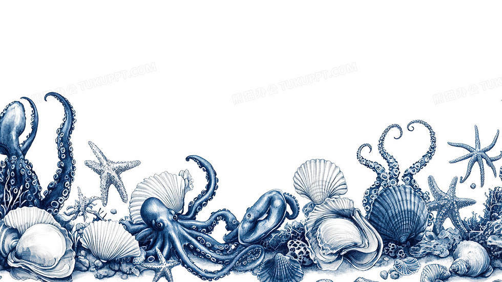 本作品内容为海鲜海洋生物元素的背景边框, 格式为 jpg, 大小3 MB, 图片尺寸为2912 x 1632, 作品中背景图片无需修改, 源文件无水印,可以直接使用, 欢迎使用熊猫办公。 如认为平台内容涉嫌侵权,可通过邮件:tousu@tukuppt.com提出书面通知,我们将及时处理。