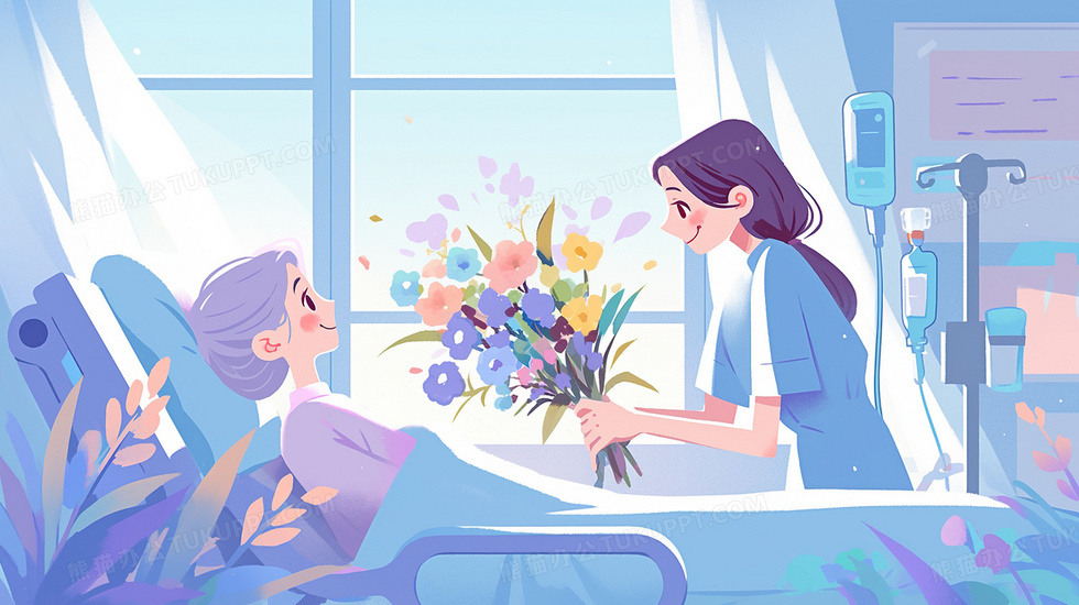 本作品内容为医院医生护士祝病人早日康复插画, 格式为 jpg, 大小2 MB, 图片尺寸为2912 x 1632, 源文件无水印, 欢迎使用熊猫办公。 如认为平台内容涉嫌侵权,可通过邮件:tousu@tukuppt.com提出书面通知,我们将及时处理。