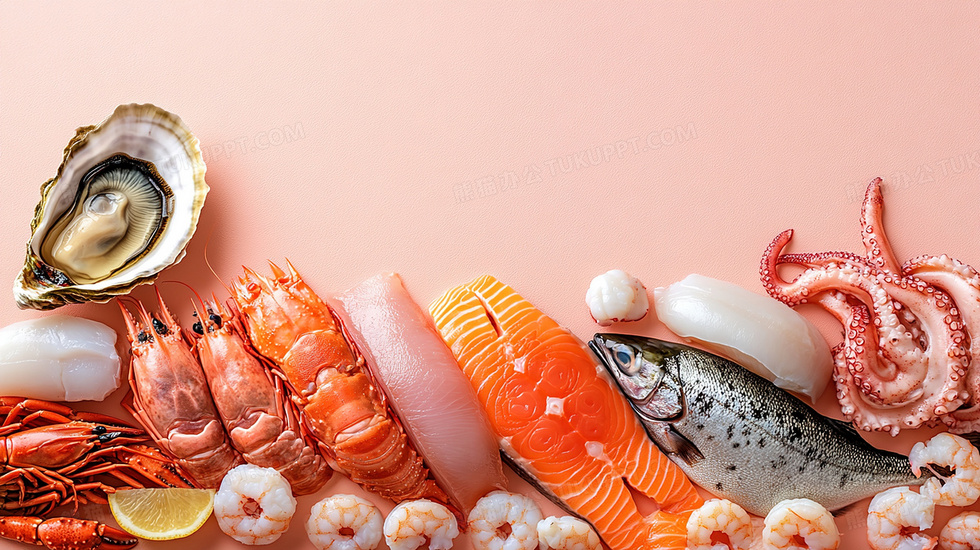 本作品内容为海鲜海洋生物元素的背景边框, 格式为 jpg, 大小4 MB, 图片尺寸为2912 x 1632, 作品中背景图片无需修改, 源文件无水印,可以直接使用, 欢迎使用熊猫办公。 如认为平台内容涉嫌侵权,可通过邮件:tousu@tukuppt.com提出书面通知,我们将及时处理。