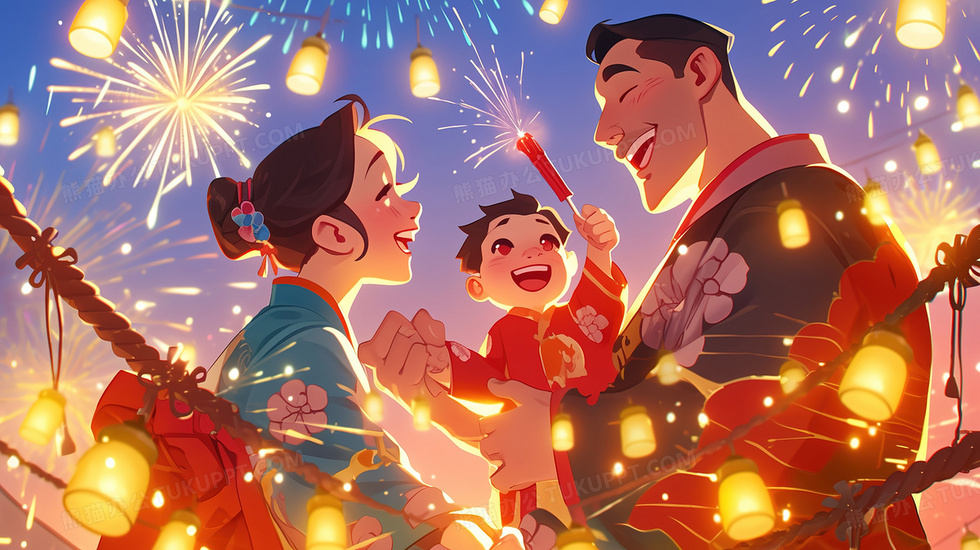 本作品内容为新年春节一家人看烟花开心快乐插画, 格式为 jpg, 大小3 MB, 图片尺寸为2912 x 1632, 源文件无水印, 欢迎使用熊猫办公。 如认为平台内容涉嫌侵权,可通过邮件:tousu@tukuppt.com提出书面通知,我们将及时处理。