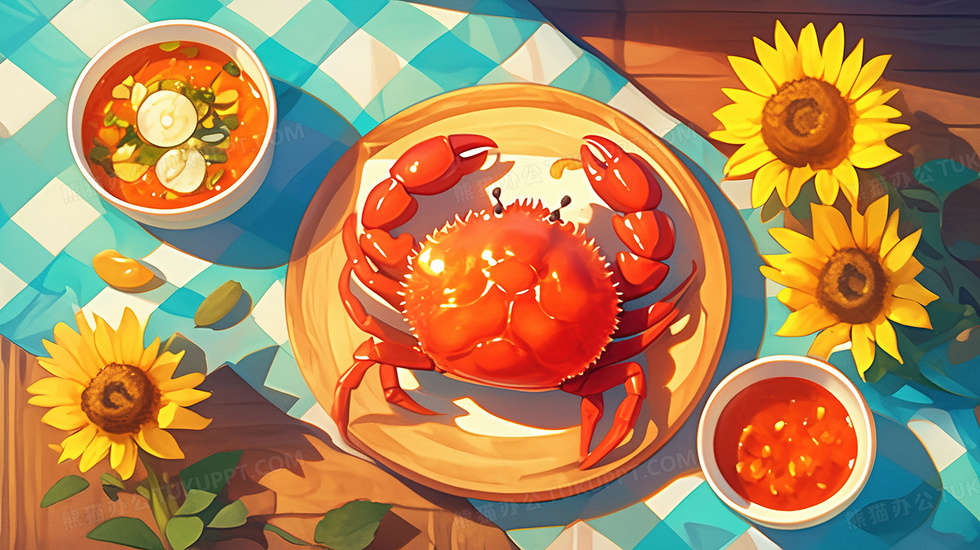 本作品内容为卡通螃蟹菊花秋季养生食物插画, 格式为 jpg, 大小3 MB, 图片尺寸为2912 x 1632, 源文件无水印, 欢迎使用熊猫办公。 如认为平台内容涉嫌侵权,可通过邮件:tousu@tukuppt.com提出书面通知,我们将及时处理。