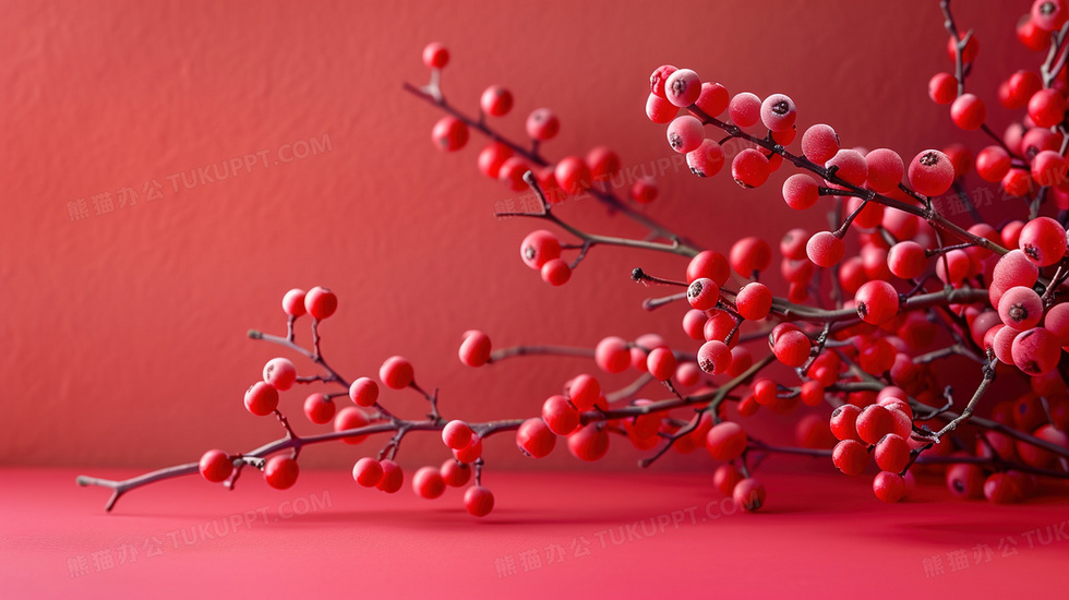 本作品内容为红色喜庆红果装饰背景, 格式为 jpg, 大小2 MB, 图片尺寸为2912 x 1632, 作品中背景图片无需修改, 源文件无水印,可以直接使用, 欢迎使用熊猫办公。 如认为平台内容涉嫌侵权,可通过邮件:tousu@tukuppt.com提出书面通知,我们将及时处理。