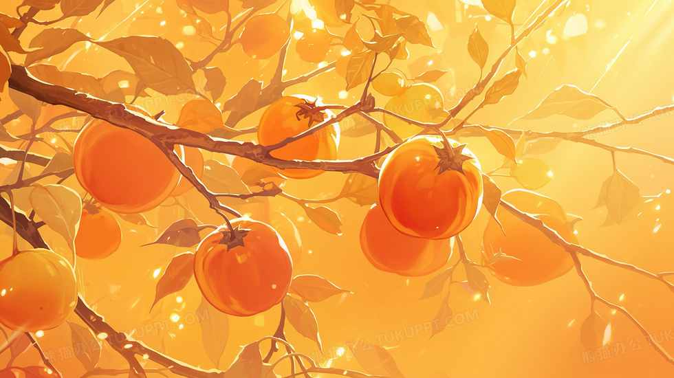 本作品内容为秋季硕果累累的柿子树插画, 格式为 jpg, 大小2 MB, 图片尺寸为2912 x 1632, 源文件无水印, 欢迎使用熊猫办公。 如认为平台内容涉嫌侵权,可通过邮件:tousu@tukuppt.com提出书面通知,我们将及时处理。