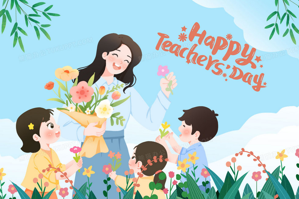 本作品内容为学生们一起送花给老师插画, 格式为 psd, 大小32 MB, 请使用软件PhotoShop(CS6)打开, 源文件无水印, 欢迎使用熊猫办公。 如认为平台内容涉嫌侵权,可通过邮件:tousu@tukuppt.com提出书面通知,我们将及时处理。