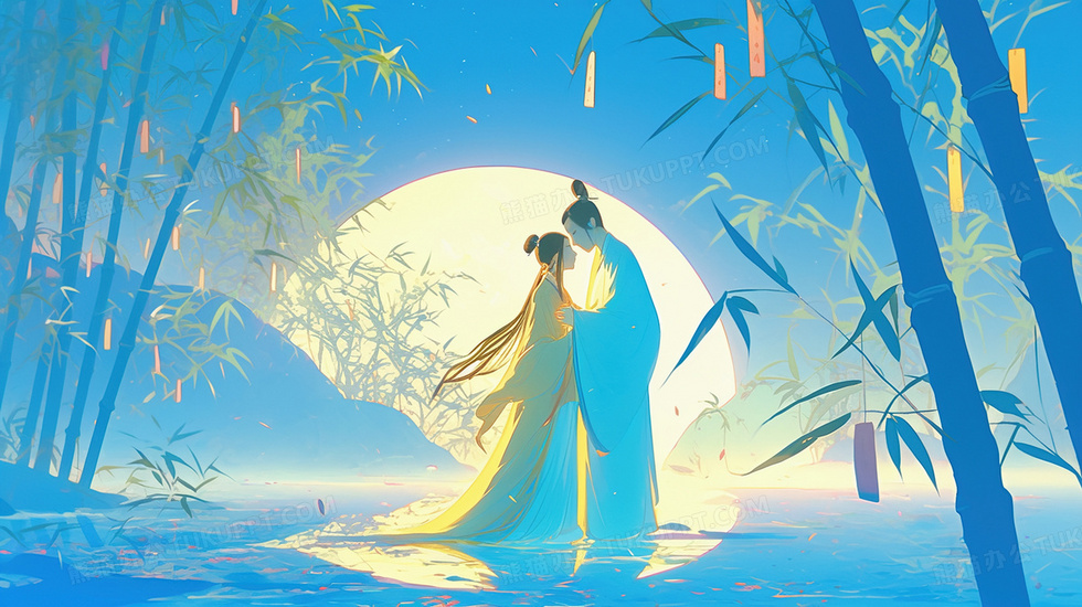 本作品内容为七夕月圆古风情侣约会浪漫插画, 格式为 jpg, 大小3 MB, 图片尺寸为2912 x 1632, 源文件无水印, 欢迎使用熊猫办公。 如认为平台内容涉嫌侵权,可通过邮件:tousu@tukuppt.com提出书面通知,我们将及时处理。