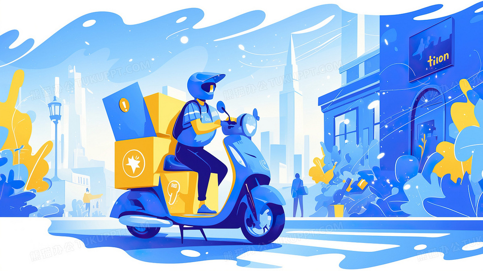 本作品内容为骑车送货送外卖电动车插画, 格式为 jpg, 大小3 MB, 图片尺寸为2912 x 1632, 源文件无水印, 欢迎使用熊猫办公。 如认为平台内容涉嫌侵权,可通过邮件:tousu@tukuppt.com提出书面通知,我们将及时处理。
