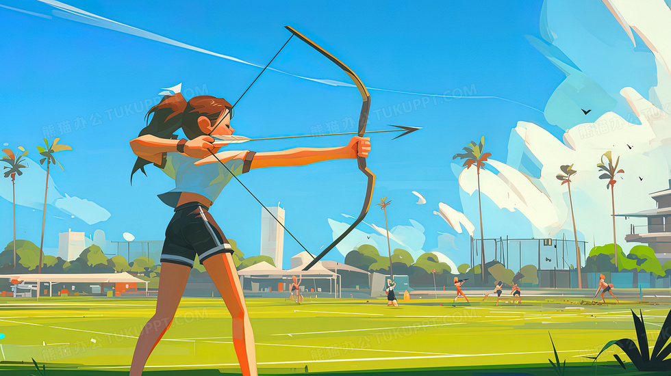 本作品内容为运动会女运动员射箭比赛插画, 格式为 jpg, 大小3 MB, 图片尺寸为2912 x 1632, 源文件无水印, 欢迎使用熊猫办公。 如认为平台内容涉嫌侵权,可通过邮件:tousu@tukuppt.com提出书面通知,我们将及时处理。