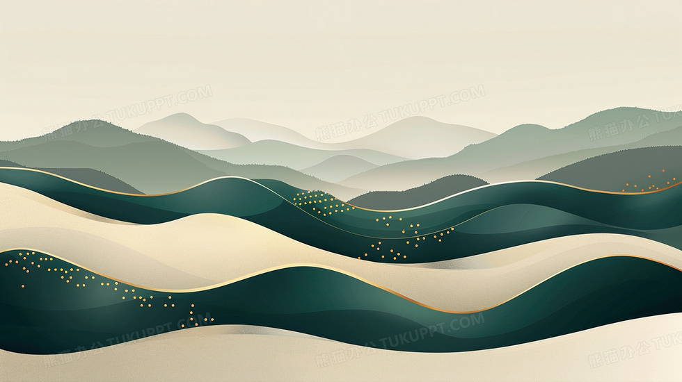 本作品内容为简约中国风金线山水背景, 格式为 jpg, 大小3 MB, 图片尺寸为2912 x 1632, 作品中背景图片无需修改, 源文件无水印,可以直接使用, 欢迎使用熊猫办公。 如认为平台内容涉嫌侵权,可通过邮件:tousu@tukuppt.com提出书面通知,我们将及时处理。
