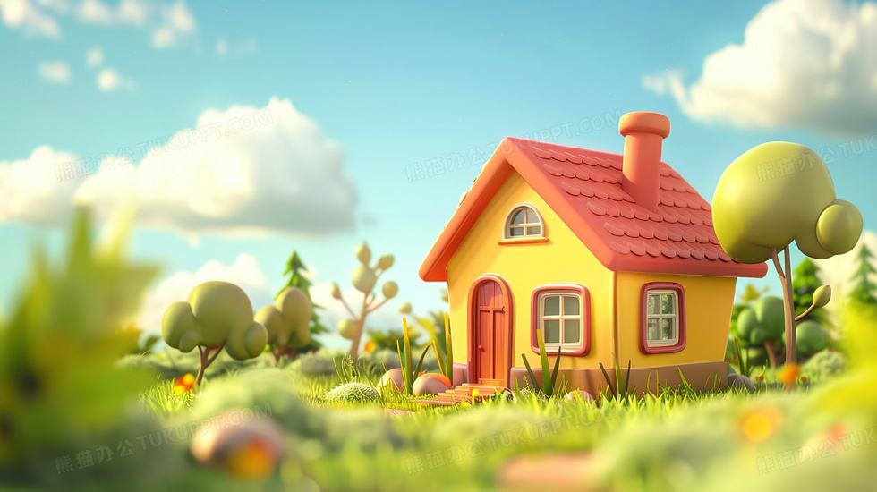 本作品内容为3D动画风格简约小房子背景, 格式为 jpg, 大小2 MB, 图片尺寸为2912 x 1632, 作品中背景图片无需修改, 源文件无水印,可以直接使用, 欢迎使用熊猫办公。 如认为平台内容涉嫌侵权,可通过邮件:tousu@tukuppt.com提出书面通知,我们将及时处理。