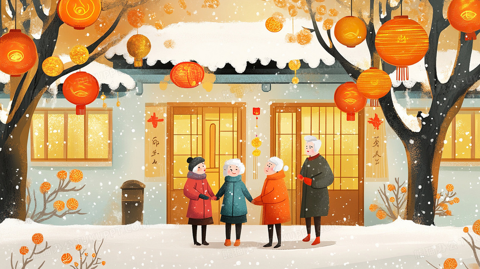 本作品内容为喜庆新年人们走亲戚拜年插画, 格式为 jpg, 大小4 MB, 图片尺寸为2912 x 1632, 源文件无水印, 欢迎使用熊猫办公。 如认为平台内容涉嫌侵权,可通过邮件:tousu@tukuppt.com提出书面通知,我们将及时处理。