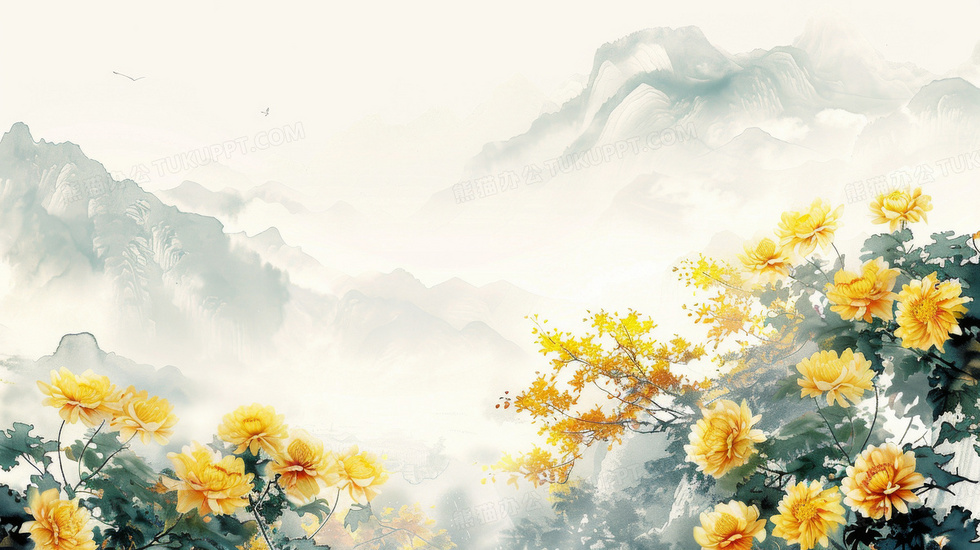 本作品内容为中国风菊花四君子国画背景, 格式为 jpg, 大小8 MB, 图片尺寸为2912 x 1632, 作品中背景图片无需修改, 源文件无水印,可以直接使用, 欢迎使用熊猫办公。 如认为平台内容涉嫌侵权,可通过邮件:tousu@tukuppt.com提出书面通知,我们将及时处理。