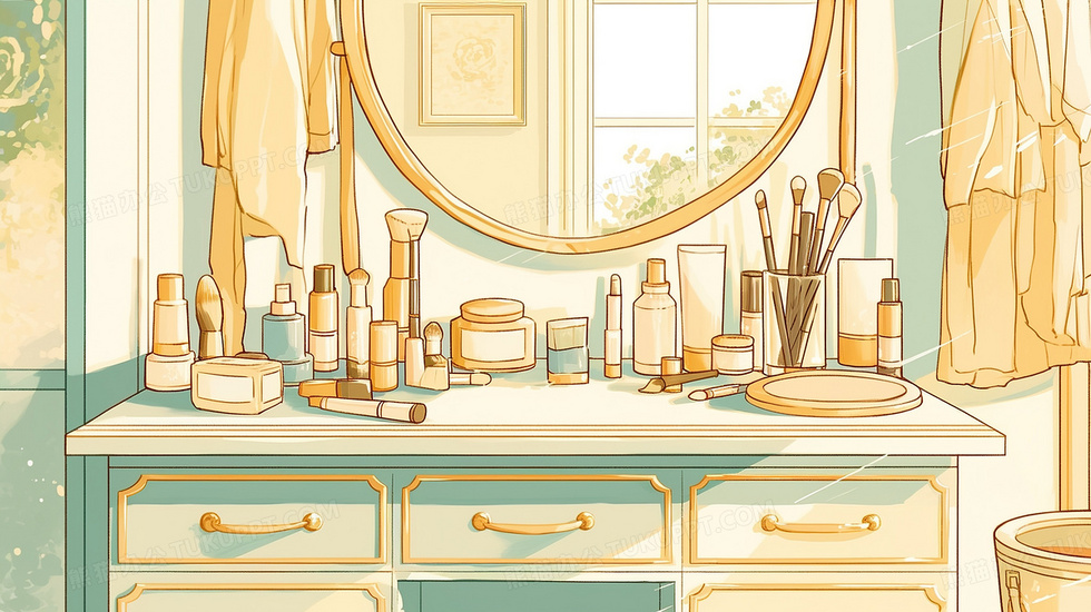 本作品内容为梳妆台上的美妆化妆品插画, 格式为 jpg, 大小3 MB, 图片尺寸为2912 x 1632, 源文件无水印, 欢迎使用熊猫办公。 如认为平台内容涉嫌侵权,可通过邮件:tousu@tukuppt.com提出书面通知,我们将及时处理。